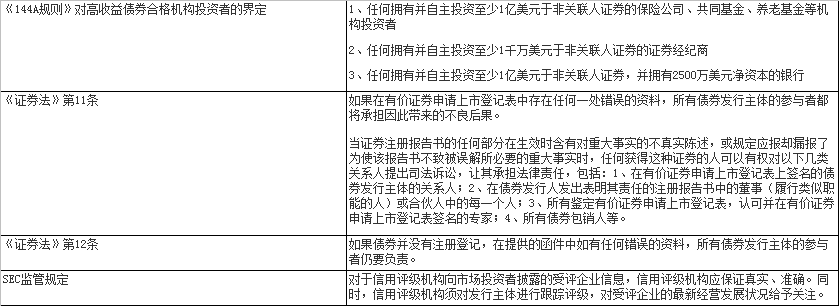 在当时美国对高收益债发行者的限制大致有两点:其一是高收益债的发行对象是被严格限制的,按照当时的法律,其只能对“不需要受强制信息披露制度保护并且‘自己可以照顾自己’的对象发行”。其二是发行人需要遵循证券法所规定的其他义务,尤其是“反欺诈法”(具体细节可见下表)。从这系列制度来看,并未有融资收购的禁行字眼,这在一定程度上也为米尔肯的高收益债融资收购形成了比较自由的制度基础。
