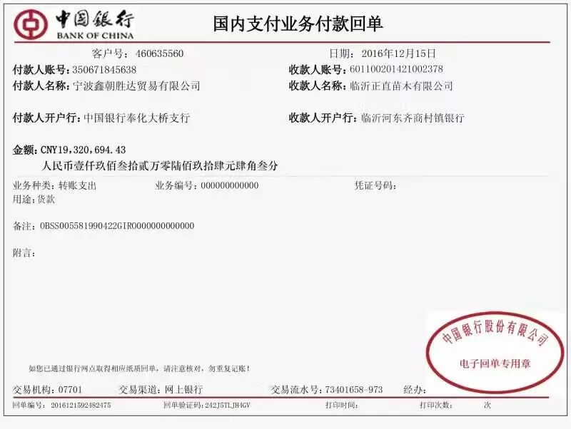 2000万中行电票贴现时被骗,骗子做的假流水,贴现企业发觉有问题时已经损失1000万,只追回剩余不到1000万。现在贴现企业与打款方均已报警!望广大票友交易时如有遇到此票,还请提高警惕!避免上当遭受损失!!!