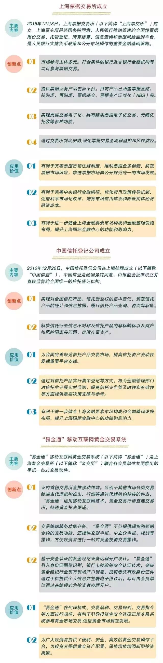 记者10日获悉,上海自贸试验区成立三年多以来,已经基本形成了以资本项目可兑换和金融服务业开放为主要内容的金融创新制度框架、更加开放的金融市场体系和金融机构体系,以及支持金融创新、有效防范风险的金融监管协调机制,还探索形成了一大批可复制、可推广的金融创新成果。 上海市政府副秘书长金兴明10日在上海自贸区第七批金融创新案例发布会上表示,近期上海全面总结了自贸试验区设立三年来开放创新的成果,总体达到预期目标。其中,金融开放创新试点是上海自贸试验区建设的重要组成部分。在坚持宏观审慎、风险可控的前提下,以金融制度创新为核心,以服务实体经济和投资贸易便利化为目标,大力推进自贸试验区金融开放创新,取得了明显成效。 “未来四年是上海国际金融中心建设的决胜阶段,要深入贯彻落实‘金改40条’,做好‘三个对标’。”金兴明说,一要对标建设开放度最高的自由贸易试验区和国际高标准经贸规则,进一步深化自贸试验区金融开放创新试点,不断提升金融服务投资贸易便利化水平;二要对标2020年基本建成国际金融中心的目标,加强与国际金融中心建设联动,加快形成更加开放高效的金融市场体系,不断提升金融市场配置境内外资源的能力;三要对标国家战略和金融改革开放总体部署,响应“一带一路”倡议,支持“长江经济带”建设,服务人民币国际化战略,加强与上海科创中心建设、国际航运中心建设联动,不断提升金融服务实体经济功能。 上海同期还公布了15个自贸区金融创新案例,聚焦“金改40条”发布以来金融要素市场和金融机构创新试点成果,包括金砖国家新开发银行发行在华首个绿色金融债券,上海证券交易所发行首批300亿元地方政府债券,首笔自贸区柜台债成功发行、首批合资券商在自贸区成立等。