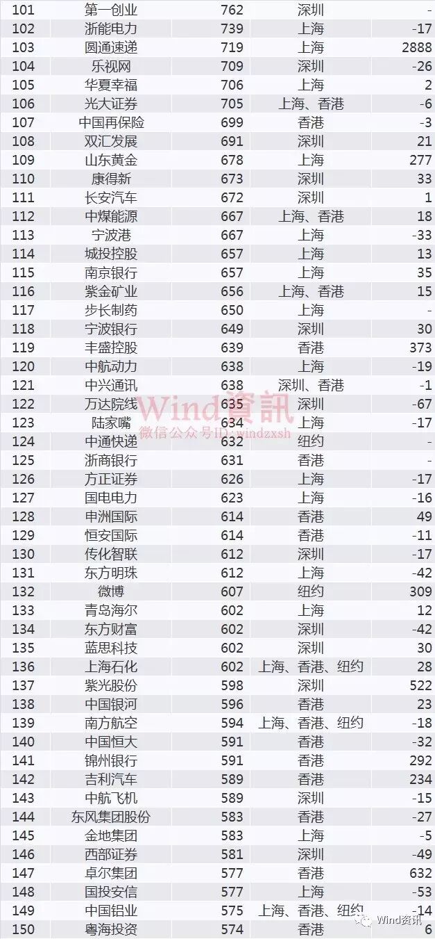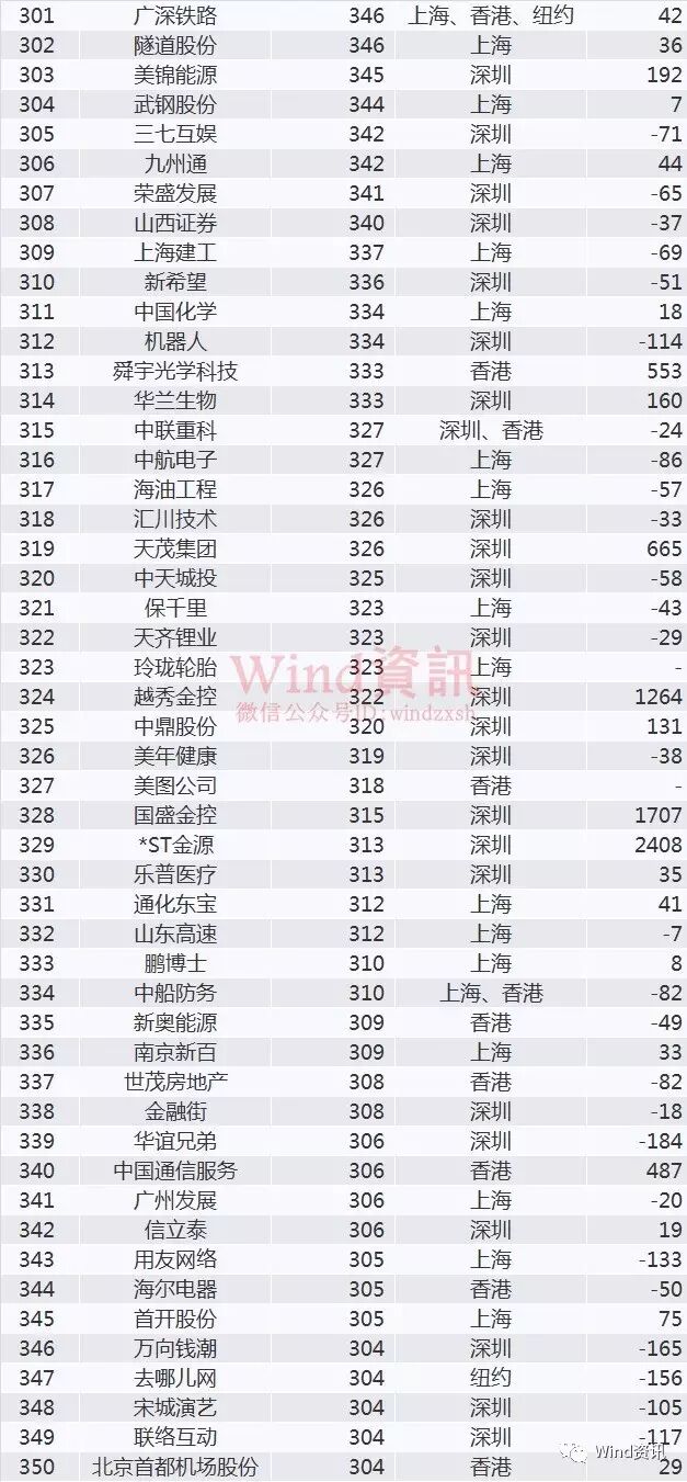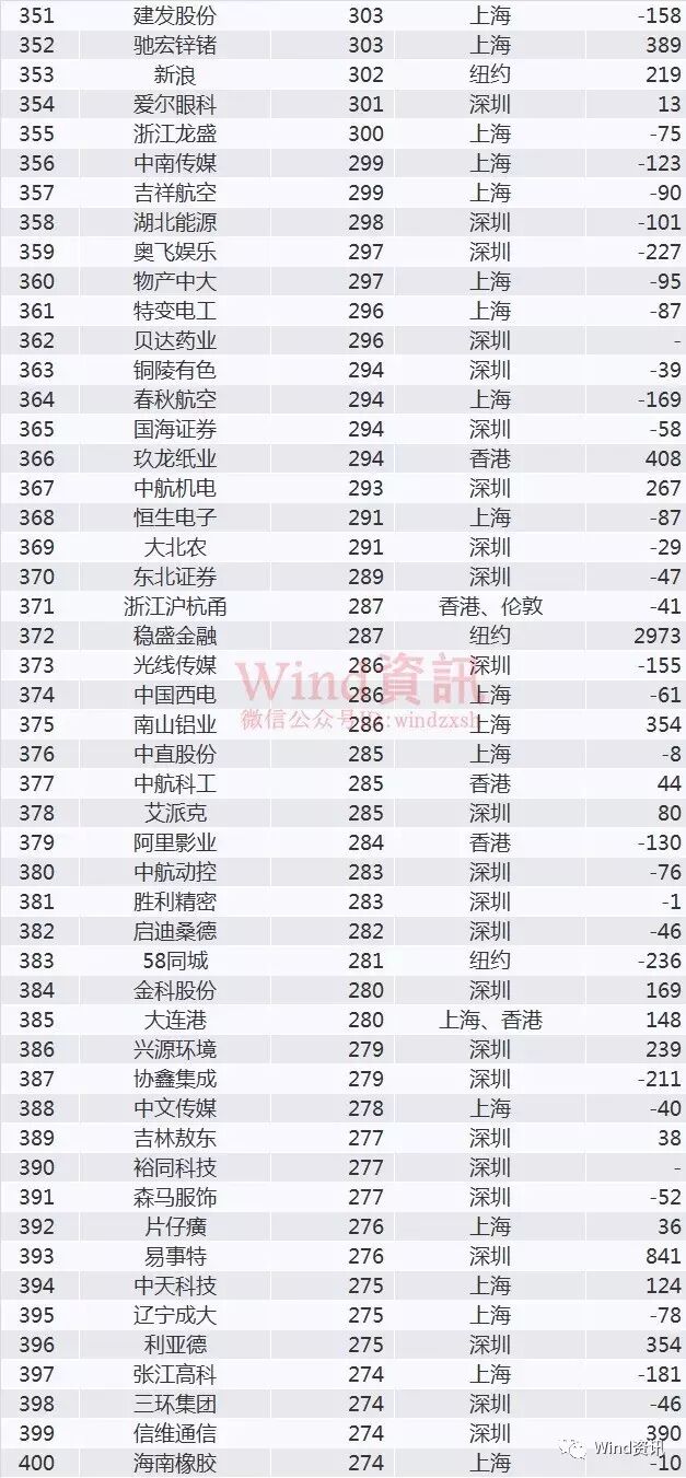 注:部分公司在中国大陆、香港、美国等地同时上市
