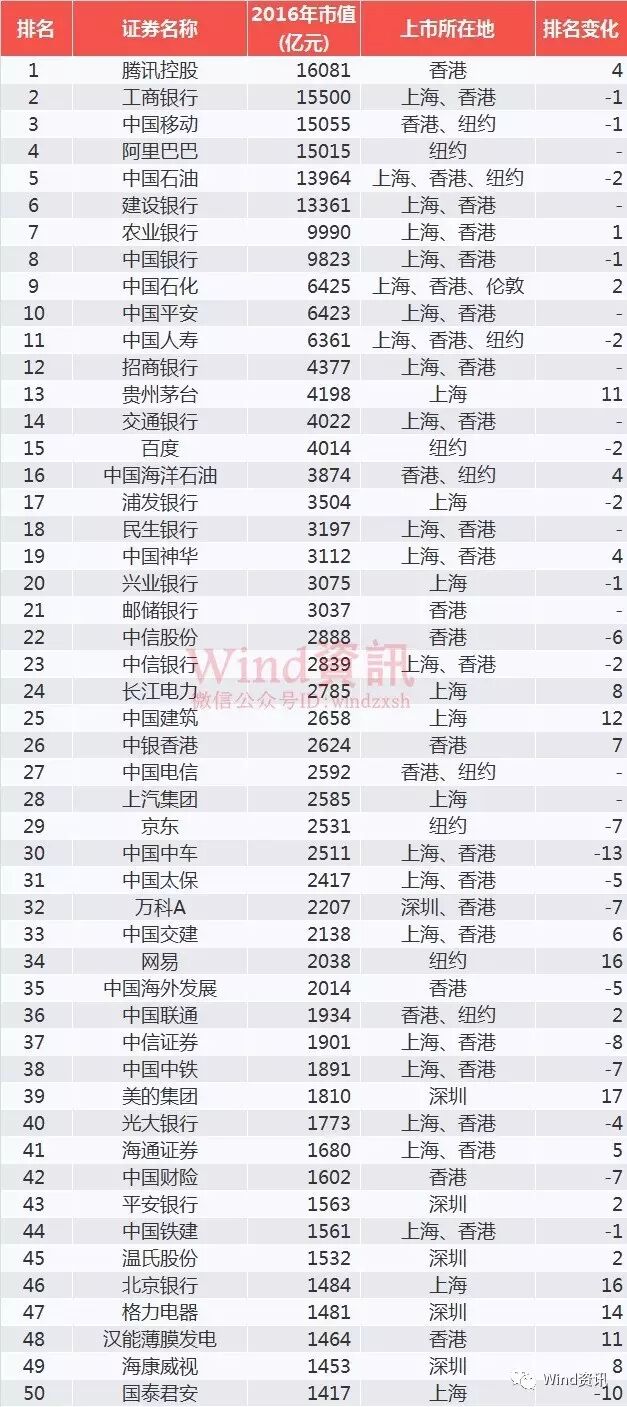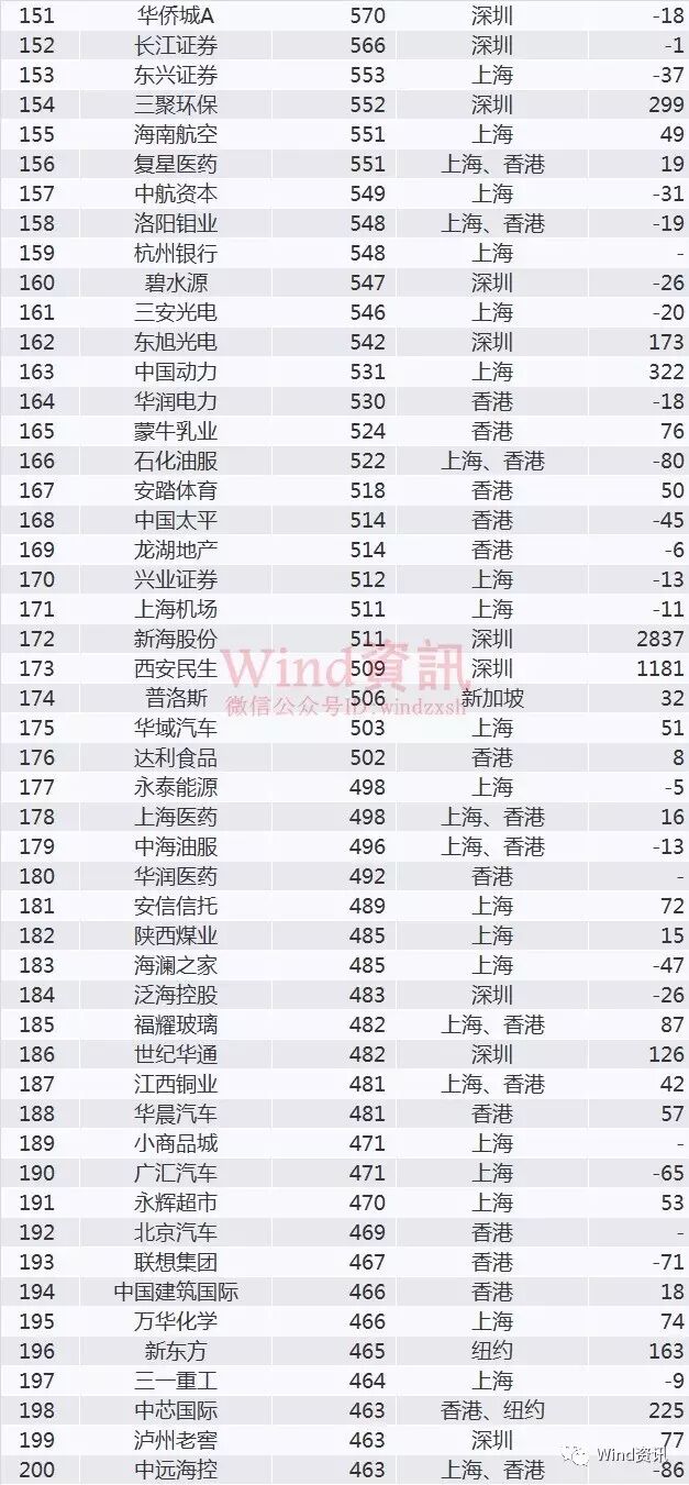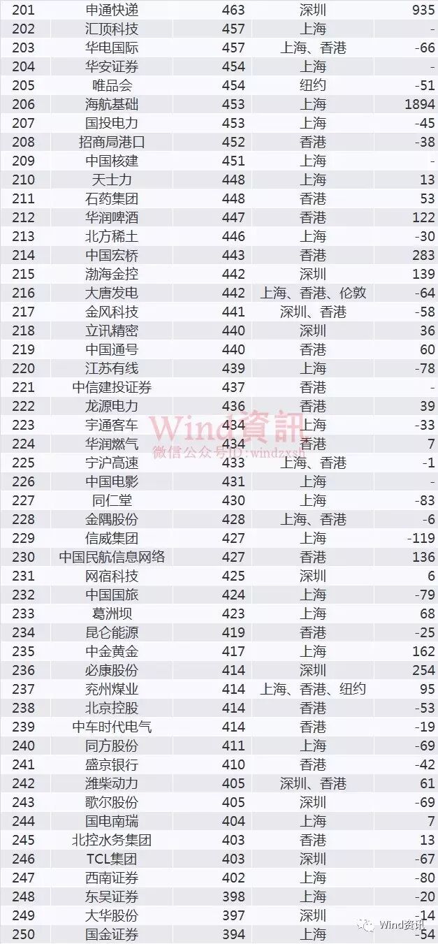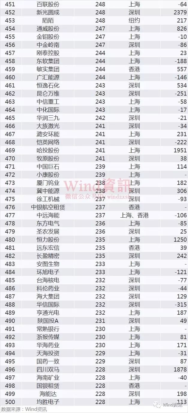 中国企业市值500强榜单