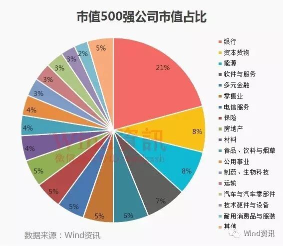 从500强行业市值占比来看,银行业最高,共有28家银行上榜。下文附详细榜单。
