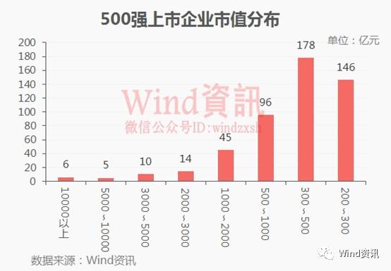 500强公司中,有6家市值超过10000亿元,80家市值超过1000亿元。大部分公司市值在200亿元—500亿元之间。