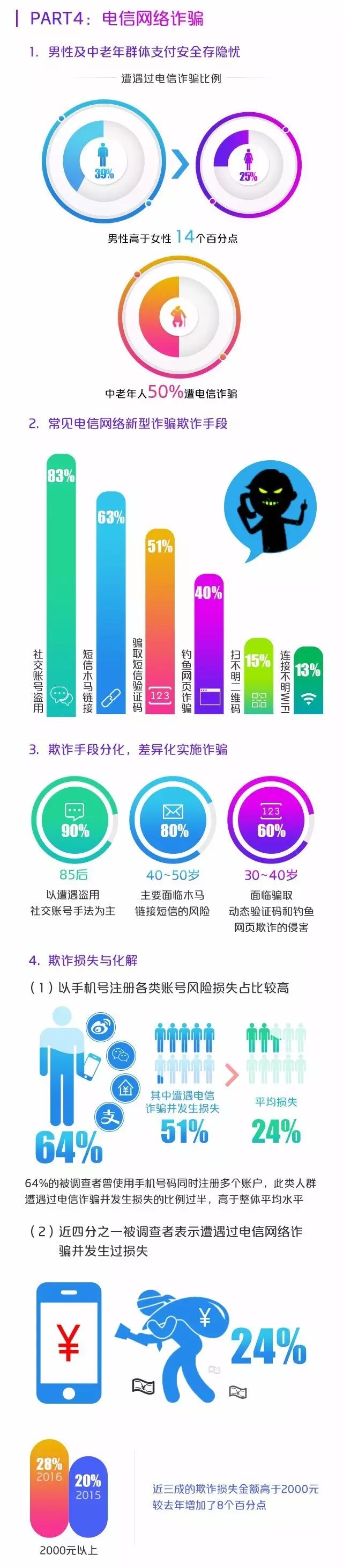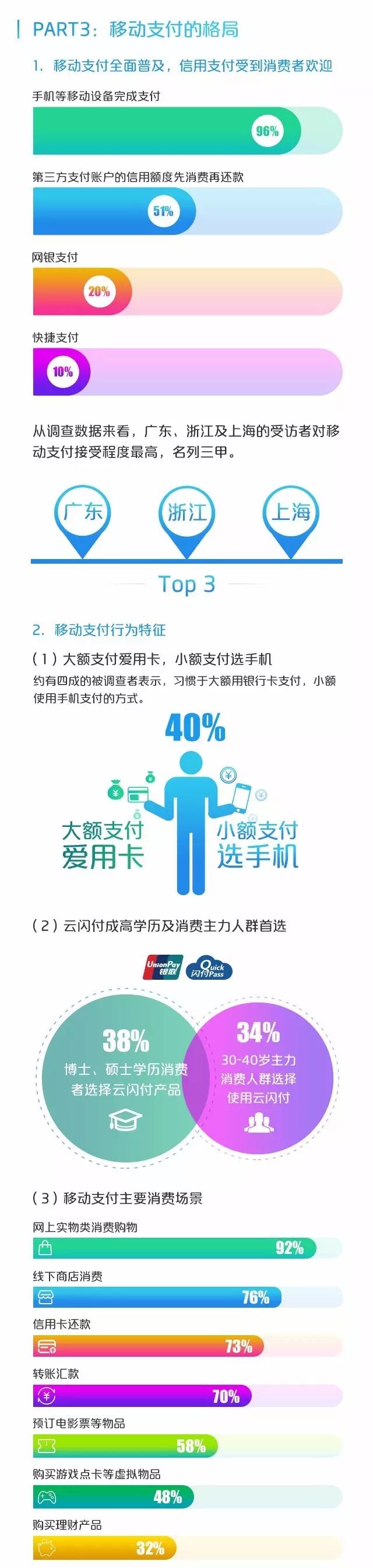 “通过今年的调查,我们看到一些新的趋势,”中国银联支付安全专家王宇总结道:“一是金融支付与科技创新深度融合,支付产品及场景更加丰富,支付更加简单、安全、方便;二是用户因此对移动支付的接受程度快速提高,移动支付已成为普惠金融的重要载体;三是服务体验不断优化,持卡人支付安全更有保障,自担风险获显著改善。”