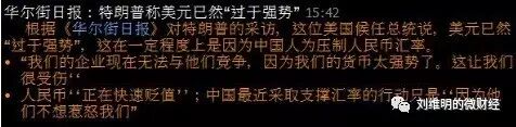 当前极为紧迫的问题是,或许我们已经没有充分的时间去对观点的分歧进行辩论,我们要做的现实选择是继续管控人民币的贬值预期、还是赶紧180度转过身来,立即开始紧急应对人民币升值的压力。 事情真是不能够再巧----文章写道这里的时候我的同事告诉我,特朗普说美元太强了…… 《华尔街日报》刚刚刊发了一则消息: