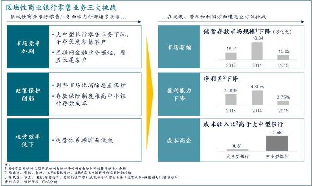 来源: CVA西维咨询 作者 王尊 梅文雯 整理:Bank资管 随着利率市场化改革、经济新常态和资本市场蓬勃发展,银行业普遍面临息差缩小、风险增高、企业融资需求分流的困境,盈利能力持续下降。我们越来越能感受到,跑马圈地、赚快钱的时代正逐步远离,银行业转型日益迫切。 零售银行具备溢价能力强、抗经济周期等特性,不少领先银行在新形势下纷纷选择立足长远、加大零售银行资源投入。目前这一战略转型已初见成效,零售业务营收占比稳步上升。 而对区域性银行而言,除了需面对全国性银行增加零售业务投入带来的压力,还需应对互联网金融崛起的挑战。外部激烈的市场竞争、价格竞争正不断侵蚀区域性银行的创收能力,而内部粗放低效的中后台运营体系,又使得成本降幅有限。 在这样的背景下,转型已成为区域性银行的当务之急。如何通过深耕零售业务逆势求存,为长期发展夯实基础,是区域性银行在当下亟待探索的课题。 基于多年的行业研究和项目经验,CVA建议区域性商业银行以客户为中心设计零售转型策略,积极规划零售转型,立足长远,探索可持续发展之路。 四大核心建议 一、加大零售银行投入 近年来银行盈利水平持续下降,而零售业务具备议价能力强、符合经济新常态和抗周期性的特点。CVA建议区域性银行加速发展零售业务。 二、加快探索零售转型 区域性银行零售业务面临市场萎缩、盈利能力下降和成本高企三重困境。CVA建议通过零售转型 “逆势求存”。 三、以客户为中心设计转型战略 CVA建议“以客户为中心”设计零售转型战略,并依据“转型七策”,全面提升客户细分策略、产品体系与策略、渠道布局、支行营销、销售管理、组织体系及支撑保障体系。 四、短期速赢提升信心 基于在协助银行零售转型方面的丰富项目经验,CVA建议通过“速赢五招”快速达成零售转型初步成效,提升转型信心,为全面系统实现零售转型建立基础。 零售转型七策 为应对挑战,区域性银行应树立“以客户为中心”的经营理念,以此为出发点设计客户细分策略。并系统性优化产品体系、渠道布局,提升客户服务体验;全面强化支行营销力量、销售管理、组织体系及支撑保障体系,打造“前台服务客户,中后台服务前台,总行服务一线”的格局。 一、设计客户细分策略 区域性银行资源有限,应集中资源服务特定客群。区域性银行未来需综合分析市场环境及自身能力特点,寻找增长潜力足、自身具备相对竞争优势的目标客户群体,识别其核心需求以及选择银行的主要标准,以此为出发点进行产品/渠道规划和能力建设。 二、完善产品体系和策略 区域性银行产品普遍较为传统,且受限于有限的资源,难以对产品进行全面开发和提升。未来区域性银行应充分发挥对本地客户深刻洞察的优势,建立以客户细分为导向的产品体系,并借助决策链短的特点,快速推进产品升级,争取成为本地客户“最贴心”的银行。 三、优化渠道布局 区域性银行普遍在本地具有网点数量优势,但也存在不少现实问题,比如:1)网点布局不合理、部分网点盈利堪忧;2)网点功能简单,客户体验较差;3)缺少强有力的线上渠道协同,难以满足中青年客户等。未来应以客户使用习惯为导向、以“广覆盖、轻运营”为原则布局渠道,保持和扩大渠道便捷优势,成为本地客户“最亲近”的银行。 四、加强支行营销 零售银行客户规模大、资源需求多,但传统网点各条线相对独立,对零售业务投入不足。区域性银行应建立和完善支行交叉营销体系,发挥网点及客户关系优势,拓展获客渠道和销售触点,提升营销转化率,使支行成为区域性银行深耕本地市场的立足点。 五、强化销售管理 区域性银行绩效体系通常较为传统,营销文化淡薄。未来应建立以营销文化为核心、以绩效考核和管理机制为抓手的营销管理体系,打造积极主动、执行力强、合作顺畅的营销组织体系。 六、优化组织体系 区域性银行网点普遍呈现零售条线员工数量不足的特点。未来应将网点工作人员全部纳入零售营销体系,与专职零售营销团队形成“蹲守+狩猎”的营销模式,最大化捕捉区域内零售业务机会。 七、夯实支撑保障体系 区域性银行普遍以公司银行业务为核心设计组织架构和制度政策,难以满足零售银行发展需求。未来,区域性银行应创建框架与机制,以统筹协调行内资源、优化零售条线对机构设置、信息系统及人力资源的管理模式,建立机制完善、资源到位、专业高效的零售支撑保障体系。 零售速赢五招 “转型七策”涉及面广、体系复杂,对区域性银行来说难以在短时间内全部落地实施。CVA建议通过“速赢五招”快速达成零售转型初步成效,提升转型信心,为全面、系统实现零售转型建立基础。 一、五个区域齐宣传 区域性银行需扩大产品宣传范围,推动网点五个功能区域的厅堂营销宣传。 二、四个岗位一盘棋 需确保四个零售关键岗位足额配备,并保证大堂经理100%在岗,明确人员营销职责,提升厅堂营销主动性。 三、三个流程三张表 建立三类流程,指导员工针对三大类客户开展协作;并通过使用三张《营销日志》,帮助网点负责人监督和辅导营销工作。 四、两个方面定指标 需从战略指标和财务指标两方面切入,建立平衡打分考核体系。 五、一个晨会一面墙 需要切实加强晨会促进营销的内容,由网点负责人组织,所有员