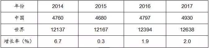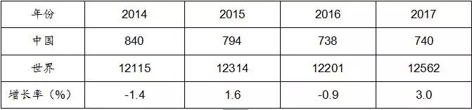 小结:2010-1012年新种胶树进入割胶期,以及价格好转下印度、马来西亚被弃割的成熟橡胶树会恢复割胶,这使2017年世界天胶产量增产成为可能。国内市场上,天胶产量近年下降趋势与弃割胶树复割因素对冲,产量与2016年持平。预计2107年世界天胶产量为12562千吨,国内天胶产量为740千吨。