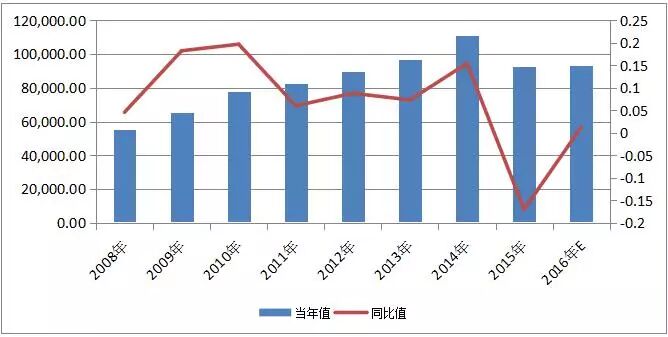 2016年1-10月,我国轮胎外胎产量为78,004.60万条,较去年同期增长1.1%,预计全年产量达93525万条,继2015年大幅下降后站稳反弹。