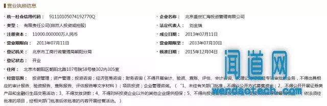 据公开资料显示,北京盛世汇海投资管理有限公司是一家资产推荐咨询服务平台,创立于2013年,注册资本1.1亿元,总部设立在北京,目前在全国60多个城市设有线下门店。查询全国企业信用信息公示系统可知,盛世汇海的法人为刘金瑞,股东为陈焕和刘金瑞,两人的实缴金额为1.1亿元,目前已经因“通过登记的住所或者经营场所无法联系”而被列入经营异常名录。