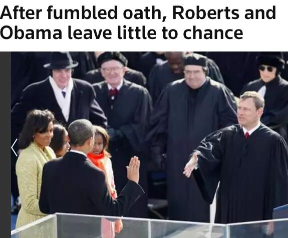 几年前,奥巴马总统和罗伯茨大法官念了好几遍都没念对,因而分了室内和室外多场来宣誓。