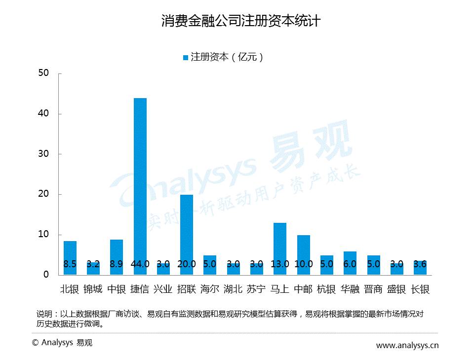 注册资本对消费金融公司意义重大,2014年1月1日起的实施的《消费金融公司试点管理办法》中规定,消费金融公司的注册资本,最低限额为3亿元;资本充足率不低于银监会有关监管要求;同业拆入资金余额不高于资本净额的100%;资产损失准备充足率不低于100%;投资余额不高于资本净额的20%。