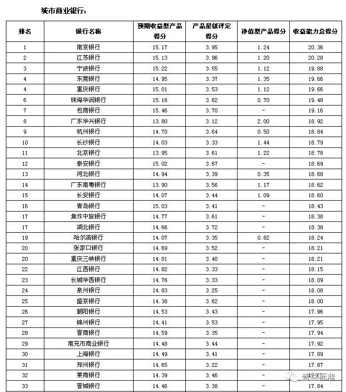 城市商业银行中,收益能力排名前十的银行依次是南京银行、江苏银行、宁波银行、东莞银行、重庆银行、珠海华润银行、包商银行、广东华兴银行、杭州银行、长沙银行。