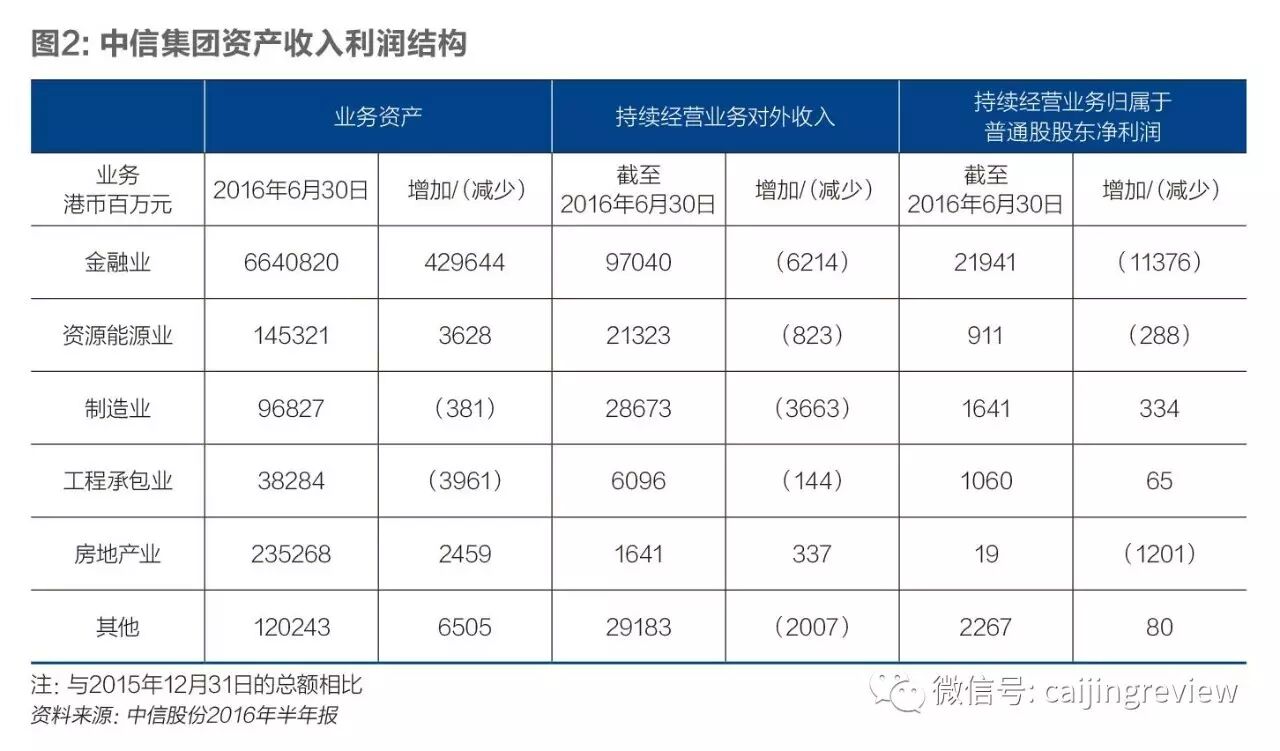 从2016年半年报来看,为中信集团贡献主要利润的依旧是隶属于金融板块的中信银行和中信证券。尤其是中信银行,总资产一度占到整个集团公司总资产的80%以上,致使在相当长一段时间内,流传着“银行兴则中信兴”的说法,这一局面至今仍未完全改变。