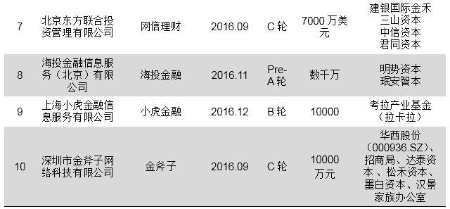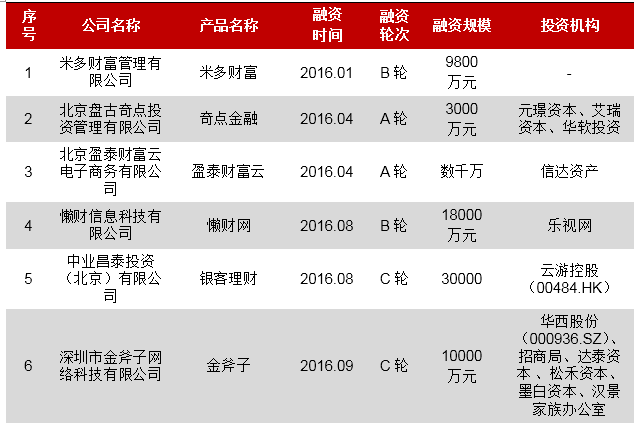 2016年部分互联网财富管理公司融资情况见下表: