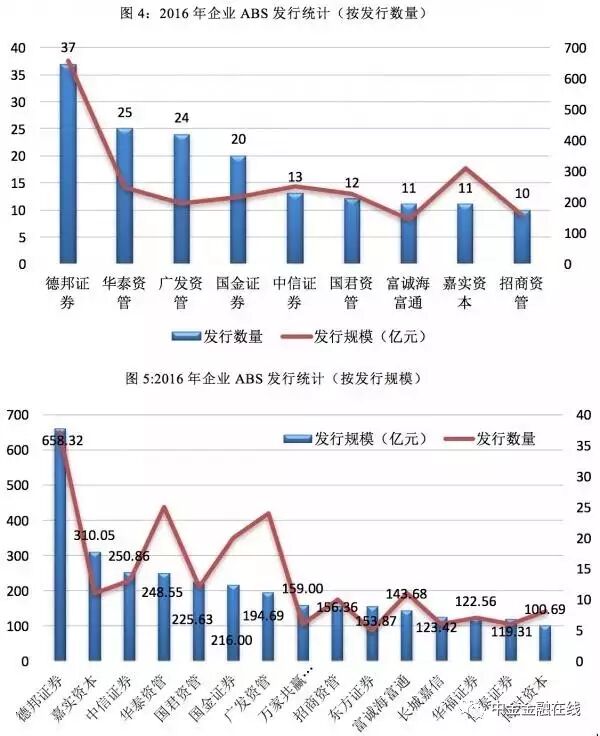 政策回顾 2016年,多部委文件均提到通过资产证券化盘活企业存量资产,降低企业杠杆,服务实体经济。各监管部门也相继出台各项政策以支持和规范资产证券化业务的健康发展。 市场发行情况回顾 目前,我国金融体系的分业监管体制形成了三个资产证券化市场,①银监会和央行监管的银行间市场的ABS市场,②证监会监管的交易所、报价系统、柜台系统的ABS市场,③保监会监管的保交所ABS市场。这对于我国构建多层次的资本市场,提供多层次的投资资产,解决企业多渠道融资等方面都有积极的促进作用。三大监管体系下资产证券化市场发展分化明显,银行间市场信贷ABS及交易所企业ABS发行市场较大,银行间市场资产支持票据(ABN)及保监会主管的资产支持计划市场相对较小。 (一)全市场发行规模持续增长,企业ABS全面赶超信贷ABS 2016年,全市场共发行资产证券化产品491单,总规模8894.66亿元,同比增长44.97%,再创历史新高。具体来看,企业ABS市场全面赶超信贷ABS市场,发行数量为376单,发行规模4830.56亿元,同比增长136.31%,规模占比54.31%;信贷ABS全年共发行108单,发行规模稍有下降,为3909.53亿元,同比减少3.62%,规模占比43.95%;交易商协会全年发行ABN共7单,发行规模154.57亿元,同比增长341.63%,规模占比2.05%。 2016年,保监会体系下资产支持计划发展仍不强势。根据中国保险监督管理委员会网站信息披露,共有四单资产支持计划获得设立批复,并另有一单产品在保交所挂牌交易。而2015年,保监会共发行5单,总规模194亿元的项目资产支持计划。 (二)基础资产仍以大类为主,类型更加丰富 2016年资产证券化产品基础资产仍以大类为主,但类型更加丰富,新增不良资产、票据收益权,商业住房抵押贷款(CMBS)、保单质押贷款等,具体来看: 信贷ABS产品中,基础资产仍然以企业贷款、住房抵押贷款、汽车抵押贷款等为主,但企业贷款类产品发行规模虽位居首位,但一枝独大的局面不再,发行规模占比由15年的76.75%下降为36.79%;住房抵押贷款类产品发行提速,发行规模由15年259.8亿元增长到1049.43亿元,增长2倍之多;受益于不良资产证券化业务试点,不良资产类ABS全年发行14单,规模156.1亿元。 资产支持票据(ABN)中,基础资产类型主要有应收账款和融资租赁债权 企业ABS中,以租赁债权、信托收益权、个人消费贷款、应收账款、收费收益权为基础资产的产品发行规模较大。其中,租赁债权类产品发行规模位居首位,为1025.12亿元,占比20.89%;其次为以信托受益权为基础资产的产品,全年发行933.46亿元,占比19.32%;2016年,个人消费贷款类产品发行实现爆发式增长,全年发行43单,规模762.24亿元,占比15.78%,而15年个人消费贷款产品仅发行2单,总规模20亿元。另外,基础资产类型不断创新,新增委托贷款、商业房地产抵押贷款(CMBS)、票据收益权及保单质押贷款等类型基础资产。 资产支持计划中,2016年共有四单资产支持计划获得保监会设立批复,分别为民生通惠-东方邦信资本1号资产支持计划、华夏久盈-华融金融租赁资产支持计划、太平-湖北联投项目资产支持计划及平安-长城资产支持计划;另,2016年11月10日,太平洋人寿首次在上海保险交易所发行首单保单质押贷款资产支持计划,首期发行规模10亿元。保监体系下基础资产类型进一步丰富。 (三)市场参与与主体多元化,机构竞争更加激烈 2016年共有82家机构作为管理人发行资产证券化产品,其中,德邦证券在众多参与机构中拔得头筹,以37单的发行数量和658.32亿元的发行规模位居行业首位,全年发行数量超过10单的机构共9家,发行规模破百亿元的机构共15家,规模排名前十的管理人管理规模均突破150亿元。 (四)交易所不断创新与分化,资产证券化领域多层次市场建立 2016年6月12日,上海保险交易所正式成立,并于11月10日挂牌交易首单资产证券化产品 “长江养老-太平洋寿险保单贷款资产支持计划”。保交所的成立为保监系统ABS提供了交易平台,打破了银行间ABS和交易所ABS分庭抗礼的局面,有望形成银行间ABS、交易所ABS、保交所ABS三足鼎立的局面。 银行间市场除了传统的信贷ABS外,交易商协会《非金融企业资产支持票据指引(修订稿)》对特殊目的载体的规定及对基础资产类型的放宽等,表明银行间市场向非金融企业融资主体的开放,企业多元化融资渠道进一步拓展。 企业ABS形成以交易所为主,中证机构间报价系统为辅的发行流通市场。在已发行的376单企业ABS产品中,交易所市场发行数量占比89.63%,发行规模占比81.27%;机构间报价系统资产证券化发行提速,发行数量占比8.78%,规模占比14.04%。交易场所进一步细化来看,2016年全年上交所共受理394单产品,受理申报发行规模共6683.32亿元;深交所共受理96单产品,受理申报规模2646.55亿元。 (五)发行利率整体下行,年末有所上升 2016年,一方面,中国实体经济虽然有所改善,但结构调整的阵痛还在释放,整个金融体系“资产荒”局面仍然无法有效缓解;另一方面,随着资产证券化市场的日趋成熟,投资者对资产证券化产品的理解力和认可度进一步提升;双重因素影响下,资产证券化产品发行利率在1-10月份总体呈震荡下行趋势,但自10月中下旬始,受债券市场收益率持续上行及年底资金面相对紧张的影响,资产证券化产品发行利率攀升。 中债企业债到期收益率与信贷ABS发行利率曲线 中证企业债到期收益率与企业ABS发行利率曲线 (六)产品开始分化:投资价值与风险暴