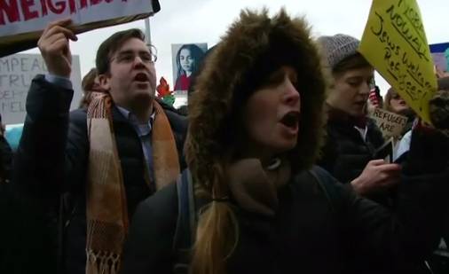 纽约肯尼迪机场门口的抗议人群当地时间 1 月 28 日,美国多地机场爆发游行,抗议这项禁令的颁布,包括纽约肯尼迪国际机场、芝加哥奥黑尔国际机场、旧金山国际机场、达拉斯/沃斯堡国际机场、西雅图-塔科马国际机场、洛杉矶国际机场和华盛顿杜勒斯国际机场等。在肯尼迪机场,抗议者高喊“不要憎恨、不要恐惧,这里欢迎难民”等口号,抗议这一禁令。纽约州州长安德鲁·科莫表示,要求纽约州有关部门寻找法律途径向机场受阻旅客提供帮助。美国当地时间 2017 年 1 月 28 日 ,纽约布鲁克林区的一位联邦法官做出判决,部分阻止了特朗普的禁令。该法官的判决让一些受到特朗普禁令影响的人避免被逐出美国,但是该法官并没有就特朗普禁令是否符合美国宪法表态。两名伊拉克移民在美国公民自由联盟 (ACLU) 律师的帮助下,控告特朗普政府的禁令“违宪”。布鲁克林的联邦地区法院 (Federal District Court) 法官安·唐娜丽 (Ann M. Donnelly) 做出了这一判决。2017 年 1 月 28 日,各大科技公司的高管就特朗普总统发布命令限制多个国家的移民表达了担忧,称此举将对他们的员工产生直接影响。苹果 CEO 库克对员工表示,“苹果有员工受到昨天发布的移民命令的直接影响。苹果将尽一切努力为员工提供支持。”他还表示,苹果在想办法把那些受到影响的海外员工带回美国。“如果没有移民,Apple根本不会存在,更没有现在的影响力。”Google 的皮柴在公司内部沟通中表示,该公司会想办法让那些可能被这新政策影响的员工带回美国。他透露有 187 名 Google 员工会受到影响。微软的纳德拉表示“我不仅仅是微软的CEO,也是一名移民。我可以看到移民对于我们公司、我们国家以及我们的世界有着积极的影响。我们会继续拥护这一重要的主题。”
