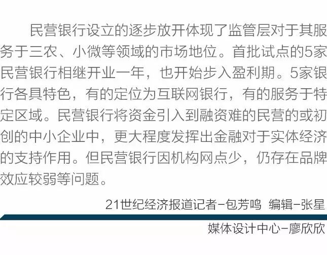 二、民营银行总资产情况 三、民营银行2016年成绩单 四、民营银行对实体经济的支撑 五、未来三大发展方向 趋势年刊由:21世纪经济报道要闻部、设计中心、采编中心、21世纪新媒体、21世纪经济研究院、飞笛研究院联合出品。 制图:包芳鸣、张星