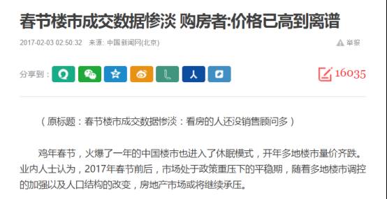 通过楼市的销售量,过节返乡的人们可以明显感受到中国经济去杠杆的进程(限贷)。比如去年房价暴涨的南京,今年1月的楼市共成交4926套,同比下跌高达六成;一些售楼处的工作人员,比看房的还要多。