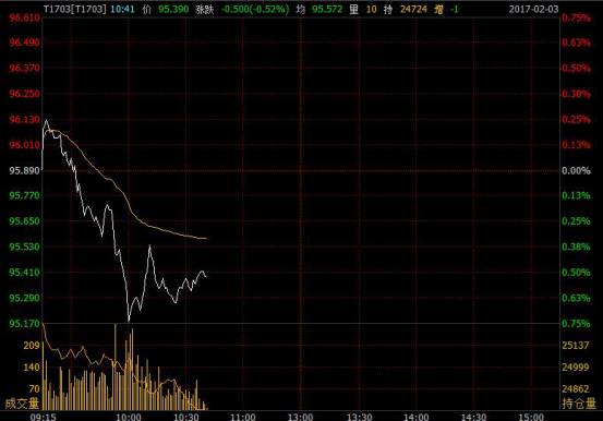 国债期货大跌。10年期债T1703一度大跌1.3%;10年国开活跃券160213收益率上行10.55bp报4.06%;10年国债活跃券160023收益率上行6.67bp报3.41%。