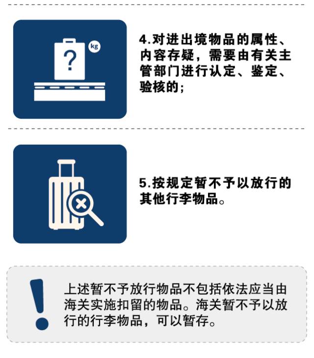 哪些行李物品海关暂不予放行?暂存的物品如何办理海关手续?《行李物品暂存指南》有必要好好看哦!文件依据◽ 《中华人民共和国海关关于进出境