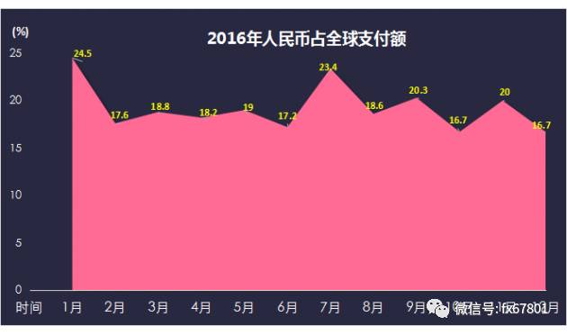 SWIFT提供的报告显示,2016年12月,人民币支付总额与11月相比下降15.08%,同期全球所有货币支付额增加了0.67%。
