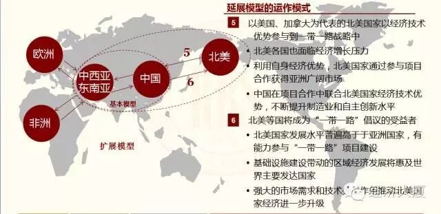 考虑今后北美国家很有可能加入,这样就可形成“一带一路”内在互利共赢机制的综合图形(见图3)。最近,加拿大总理访问我国时要求加入亚投行的请求和美国新当选总统关于基础设施建设的言论,也在一定程度上从经验事实上支持了这个综合图形反映的内在经济逻辑。