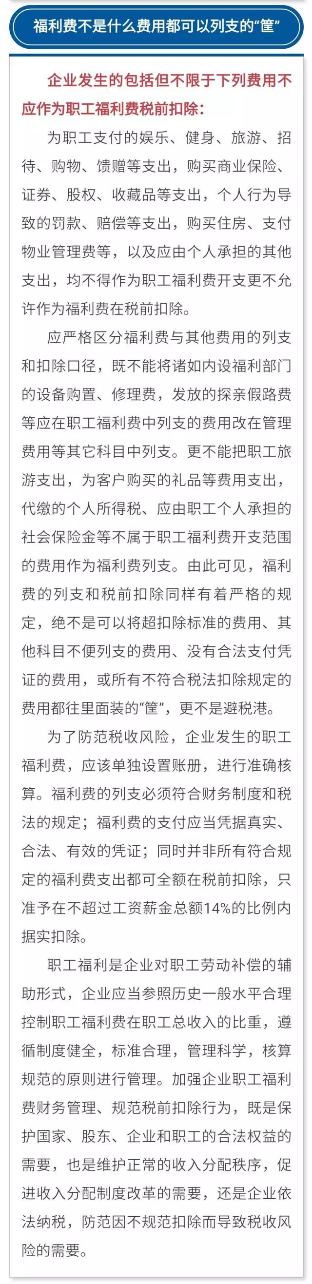 在很多税收业务交流平台,福利费这个词常常被提及,“将员工向公司的借款转为赠送处理可否在福利费列支?”,“是不是只要不超过扣除比例,任何超标准的费用都可以转到福利费来列支?”,“单位食堂从市场购买的肉菜蛋等食品,无法取得发票,是否可以自制凭证计入福利费?”,“企业组织职工旅游的费用能在福利费中开支吗?”,“本年没有用完的福利费额度可以结转下年使用吗?”,从这些问题的提出,可以看出常常有人把职工福利费当成一个什么都可以装的“万能筐”,误以为凡是不能在费用中列支或扣除的支出都可以计入福利费科目。