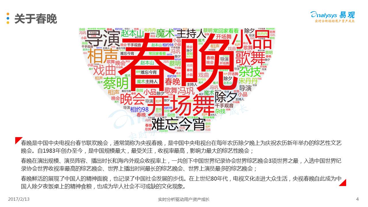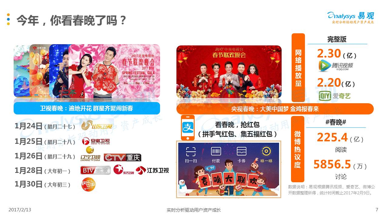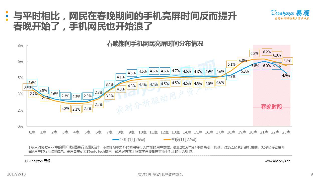 那么,今年的春晚你看了吗?不看春晚的网民都在干什么?哪些APP最受欢迎?Analysys易观用大数据告诉你,谁动了春晚的奶酪!