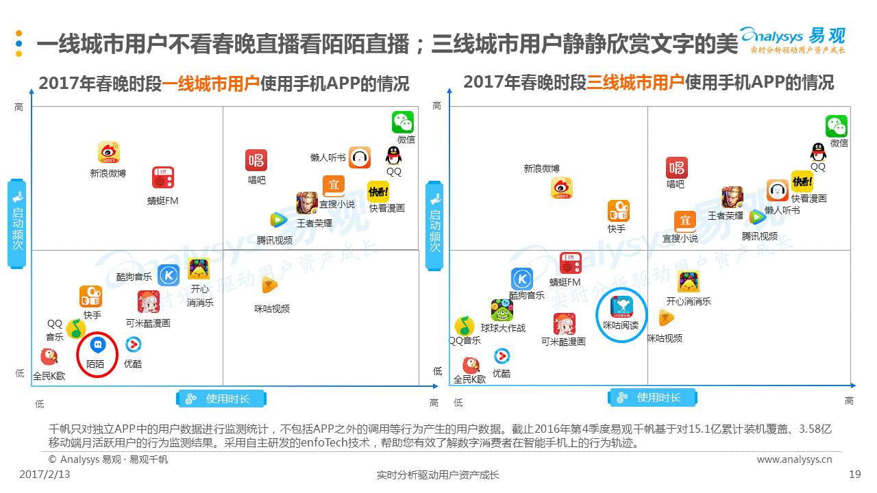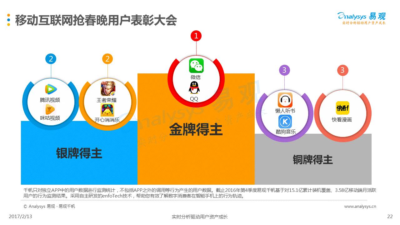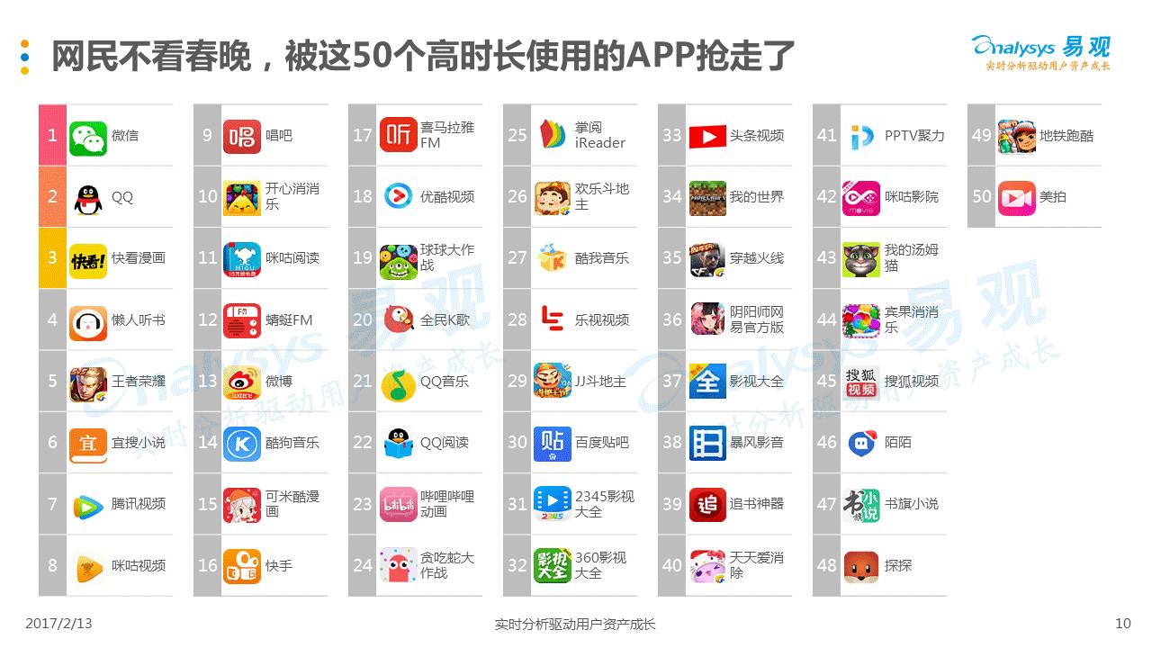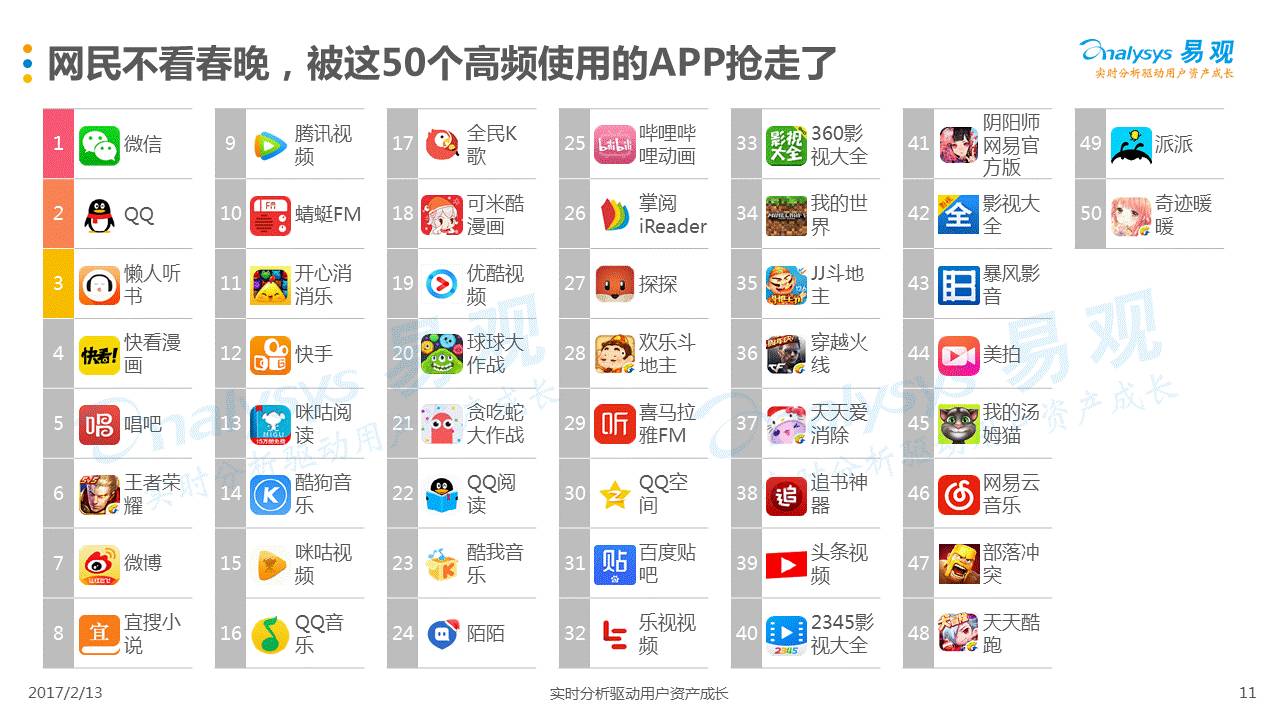 那么,今年的春晚你看了吗?不看春晚的网民都在干什么?哪些APP最受欢迎?Analysys易观用大数据告诉你,谁动了春晚的奶酪!