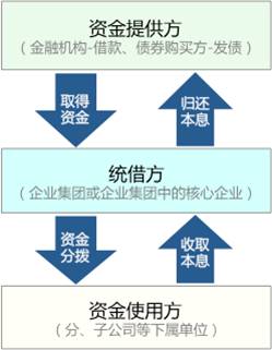 (2)企业集团向金融机构借款或对外发行债券取得资金后,由集团所属财务公司与企业集团或者集团内下属单位签订统借统还贷款合同并分拨资金,并向企业集团或者集团内下属单位收取本息,再转付企业集团,由企业集团统一归还金融机构或债券购买方的业务。