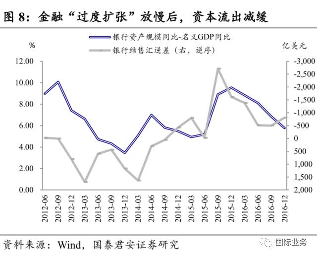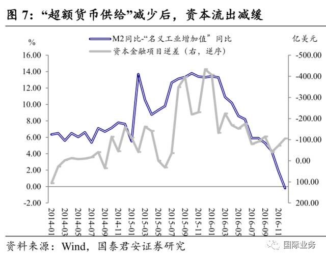 “超额流动性”收缩已是大势所趋。一方面,货币政策转向的信号越来越明确,货币供给不太可能再次大幅扩张,金融机构的过度扩张会继续被抑制。另一方面,实体经济活动开始企稳,正常经济活动消耗的“流动性”也易增难减。因此,2017年资本流出减缓趋势很可能延续。