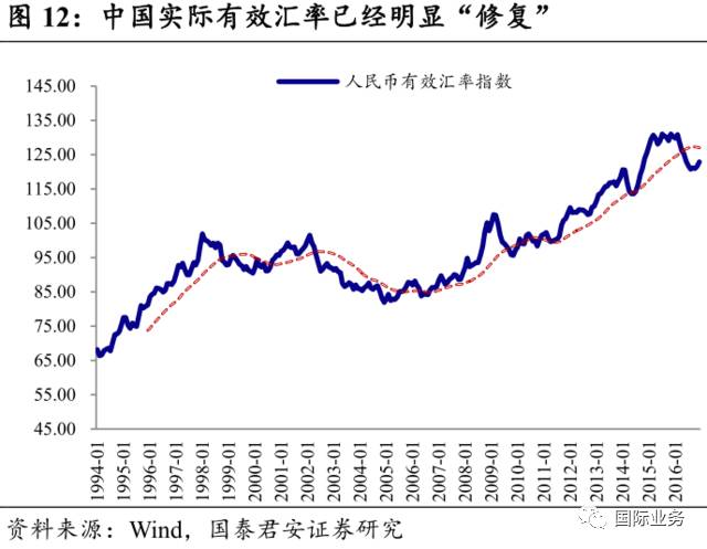 第二,外部人民币贬值阻力也越来越大。虽然过去几年中国出口经历了绝对增速的下滑,但在全球贸易萎缩的大背景下,中国出口份额仍在提升。2016年,随着人民币持续贬值,实际有效汇率也获得明显“修复”。在全球贸易保护兴起的大背景下,人民币继续贬值获取竞争力的难度会越来越大。