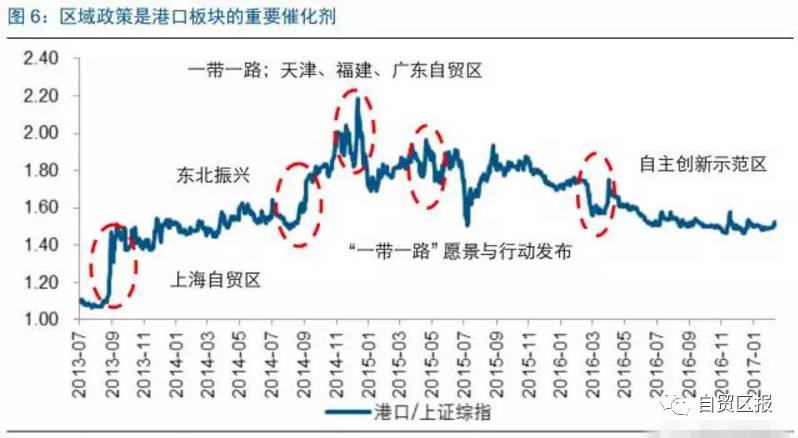 长江证券张宇生、王杨指出,从受益逻辑看,一带一路对港口物流发展最直接的影响即货运吞吐量的有效提高。 具体来看,一带一路战略有效加强了各类运输方式之间的互联互通,促进沿线贸易的发展,优化生产要素的配置,继而提高港口的货运吞吐量,直接推动港口物流的发展。