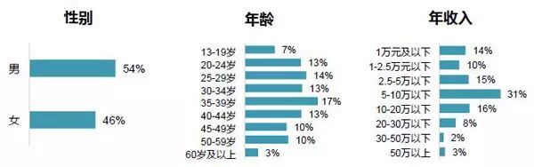 在个人网银用户中,男性用户比例54%,比女性略高;40岁以下年龄用户占64%,其中30-39岁用户比例最高,为17%;用户个人年收入主要集中在5-10万元。