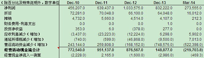 上图展示的是三大报表的内在勾稽关系,很明显现金流量表属于附属品,现金流量表的信息已经在资产负债表和利润表中体现出来了。那这就有问题出现了,大家有多少质疑现金量表的,最起码是自己先测算下,然后比照下会计师审核过的数据(会计师也不是万能的,水平也是参差不齐,也存在道德风险的可能),两者是否有差异,本人在考察公司时都会做这个测算,当然对于我而言只是几分钟的功夫(但对于重组、并购频繁的公司分析起来会比较麻烦),在研究中我就发现很多上市公司对现金流量表就有不同的调节方式,三项现金流完全可以交叉挪移,只要保证这个总蓄水池没漏洞就OK。