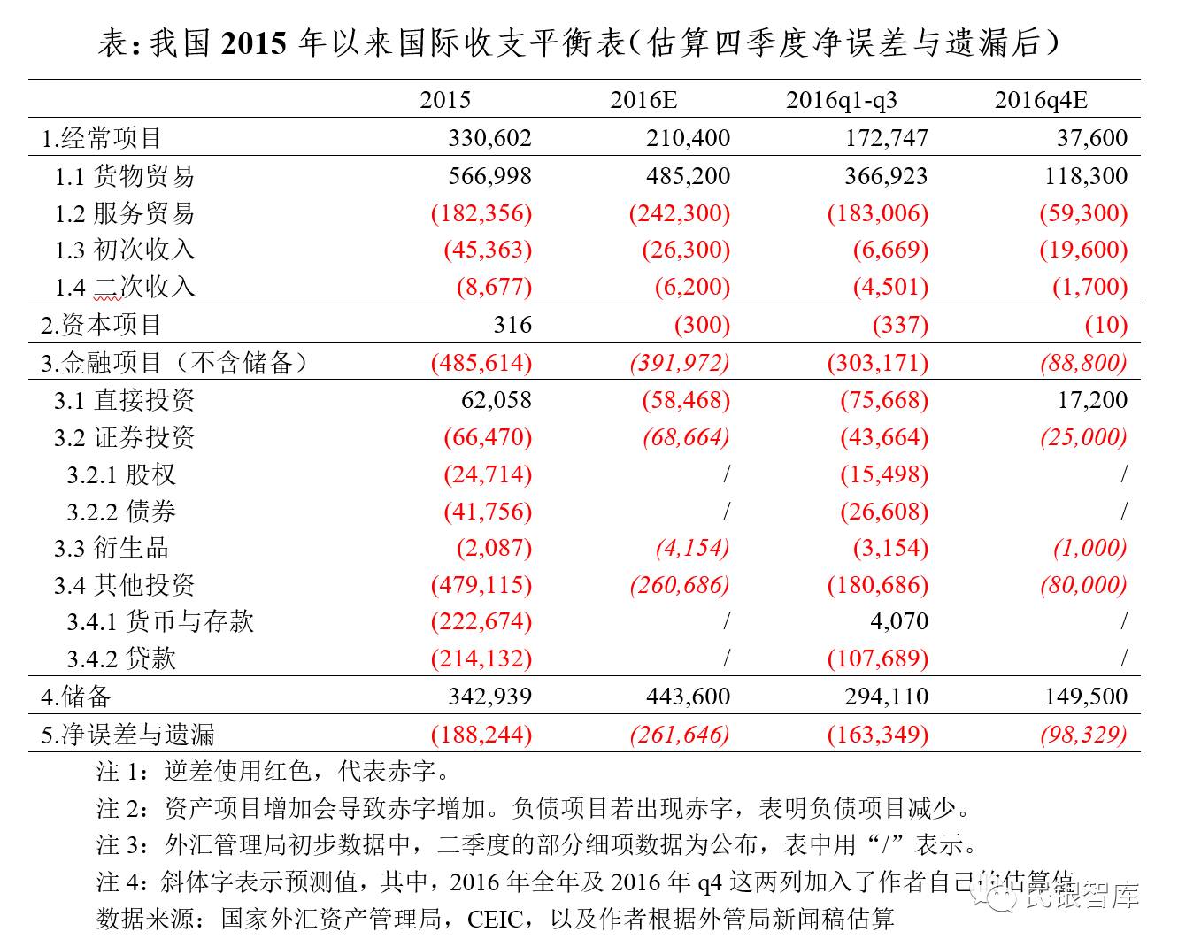 1剔除净误差与遗漏后,全年非储备性质的金融项下逆差应小于2015年