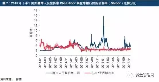 在目前离岸人民币市场整体规模收缩的情况下,资产配置失衡带来的扩散效应可能有所放大,尤其是临近季末假期(中秋、国庆等时点),内地银行间市场因节日休市,季节性因素导致资金回流在岸,这也是2016年9月底至10月初国庆前,离岸人民币市场拆息出现大幅波动的主要背景。