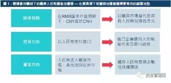 在结算过程中,境内外进出口商根据汇率波动,相应利用人民币及美元进行不同地点的结算,从而推动离岸市场人民币池不断扩大,机制具体表现为:当人民币汇率处于升值预期时,香港离岸市场美元兑人民币汇率(CNH)较境内市场美元兑人民币汇率(CNY)升值更为明显。CNH升水意味着离岸市场人民币价格更贵,企业使用人民币进行进口贸易结算能够获取额外收益,因此有动力通过对进口支付人民币取代美元,导致境内人民币流动性外溢至境外。