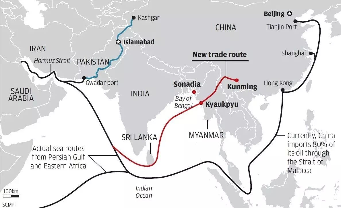 二是保障中国的能源安全。除了原有传统的海运通道以外,现在又有新的陆路通道正在出现。规划中的中国能源通道最东边就是从俄罗斯的西伯利亚到大庆的石油管线。最西边是从哈萨克斯坦一直到中国霍尔果斯入境的油气管道。还有一条,是从昆明到缅甸的石油管道且经修通,这意味着海上石油通道大大缩短,不经过太平洋就可以到昆明,避开马六甲海峡的风险。目前正在规划从新疆喀什到巴基斯坦瓜达尔的油气管线。如果这个管线开通,则可以直接输送到波斯湾,是从波斯湾进入中国最短的一个通道而不必绕过印度洋。这些通道一旦如期完成,中国的能源安全保障程度就大大提高。