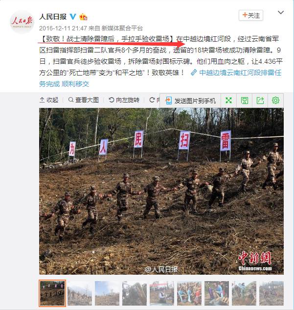 “1979年2月17日,中越边境自卫还击作战打响。战争结束后在中越边境留下许多雷场。近期,多篇中越边境地区扫雷的文章感动了网友,引起强烈反响。