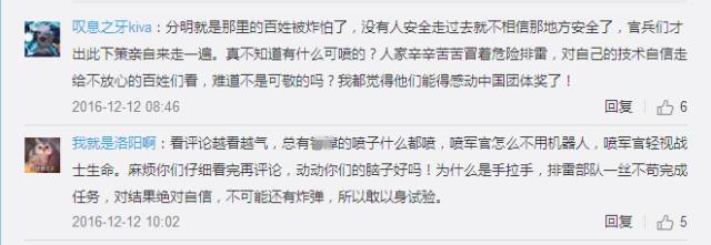 说实话,刚看到这样的评论时,我心里是不太舒服的。战友在前线冒着生命危险排雷,有人却在网上质疑?