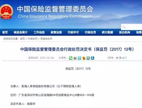 (保监会处罚决定书,内容有删减)