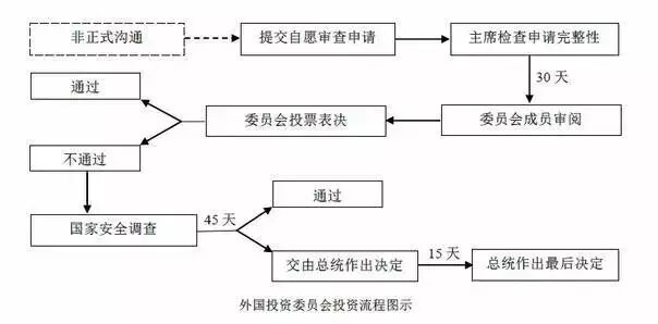 如果委员会无法对某一兼并购交易做出最终决定或认为该交易需要总统的介入,则会以向总统提交报告的形式让总统作出最后决定。(参见图:外国投资委员会决策流程)