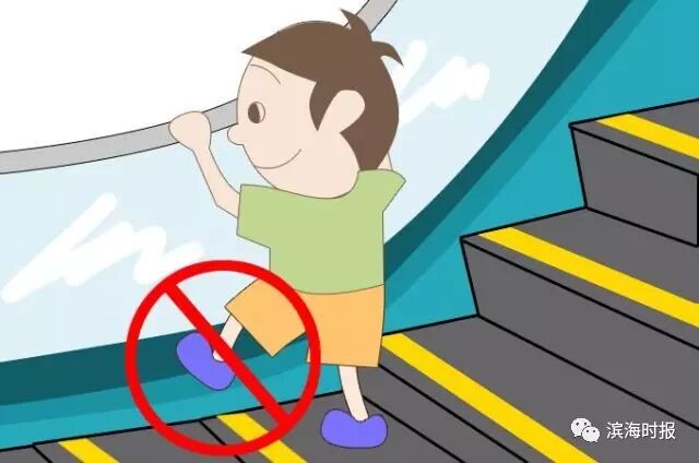 8、不允许孩子在自动扶梯的台阶上拿东西(视听电子产品),因为如果东西掉了,你就会去捡,由于电梯是一直运转的,所以就会发生踩踏事件。