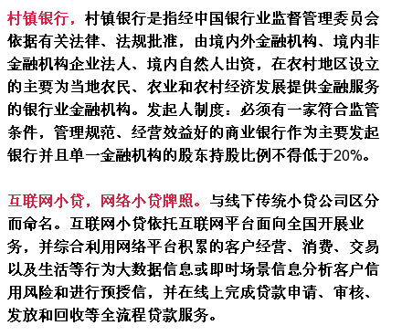 【导读】很多人对城商行、农商行、村镇银行以及互联网小贷概念和相关理念区分不清。今天我们从它们的牌照来理解 。