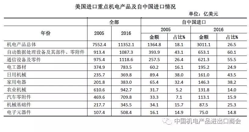 2004-2016年,中国连续13年是美国机电产品进口的第一大来源地