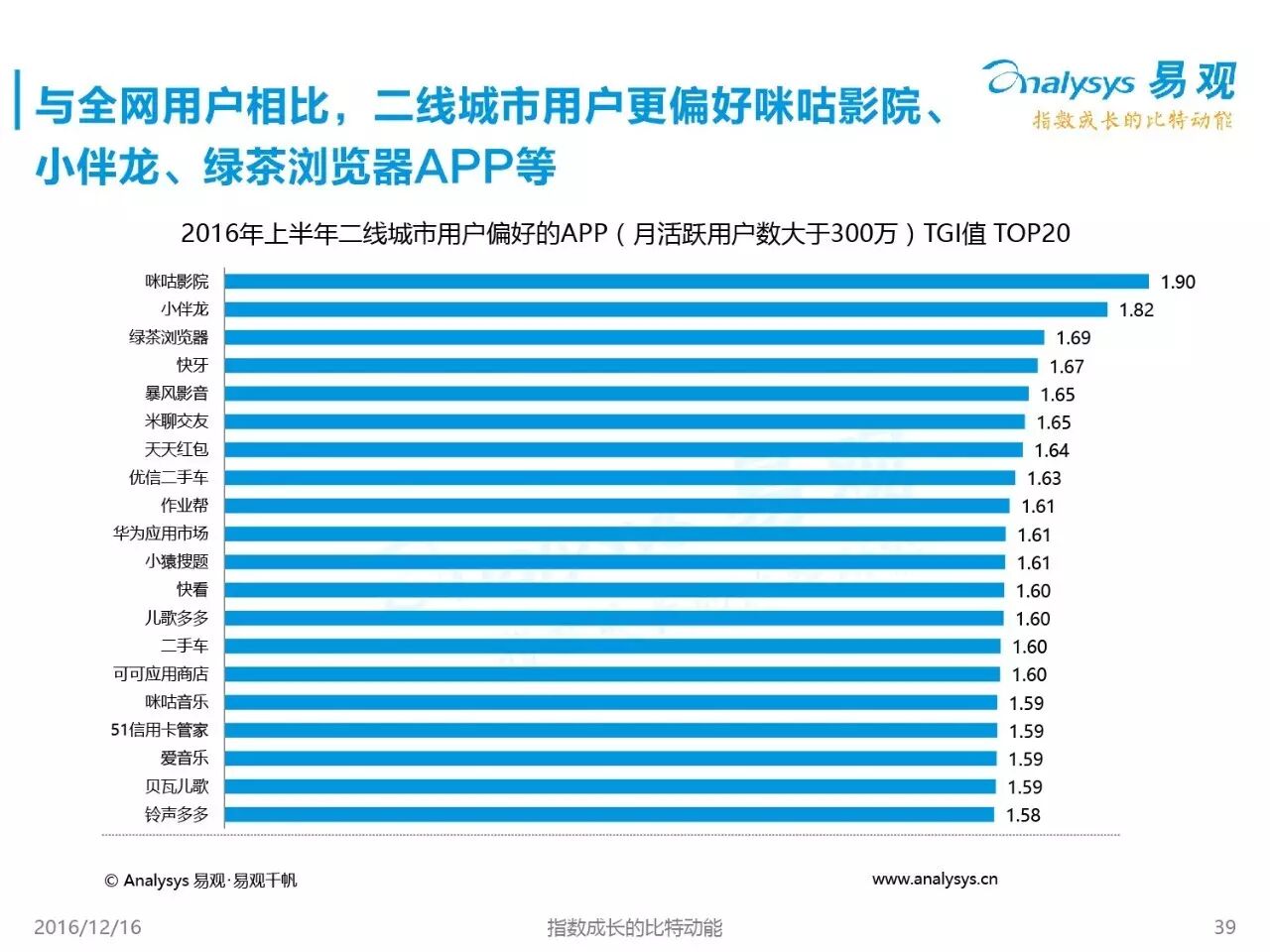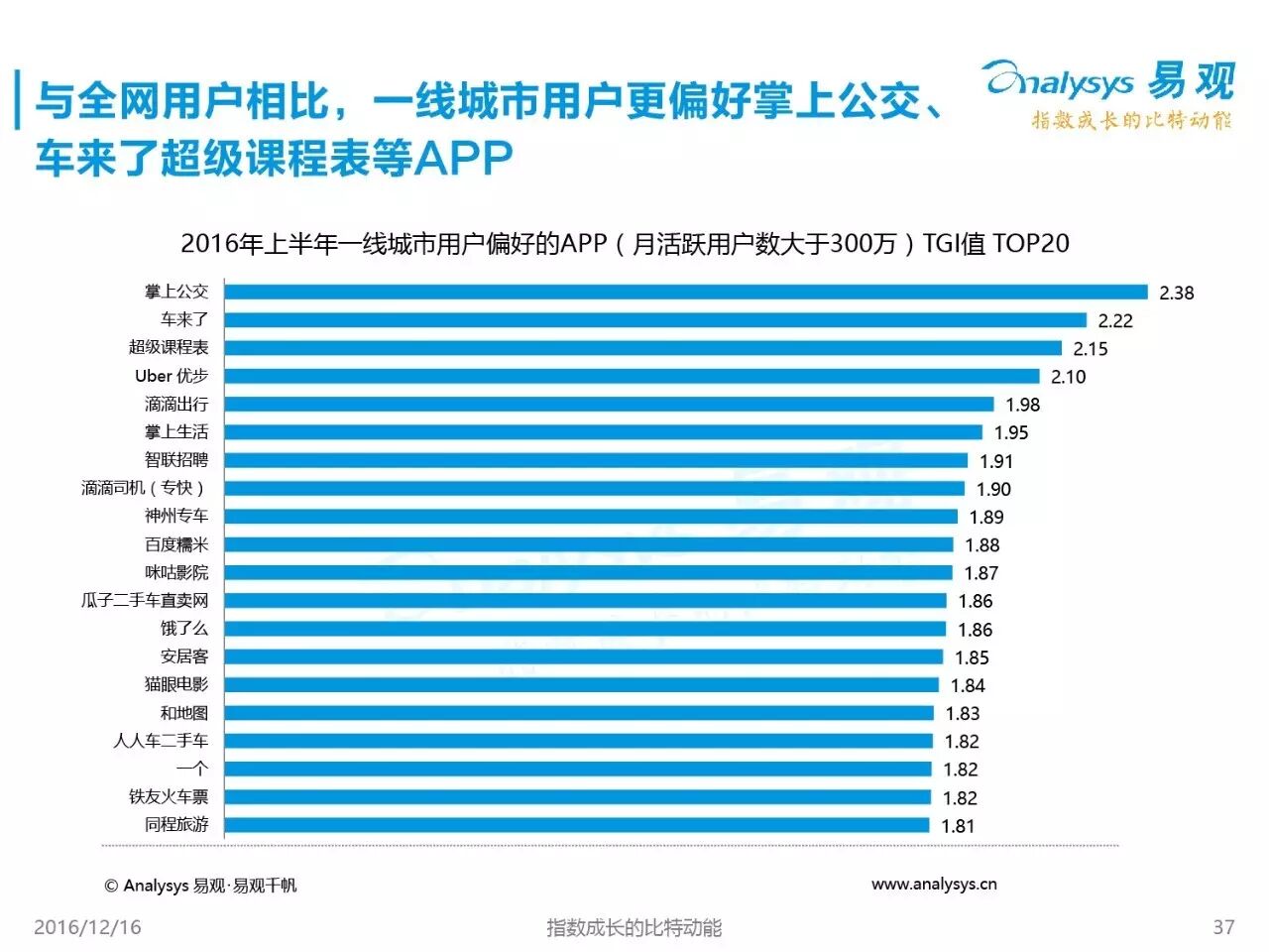 2016年即将过去,这一年,中国移动互联网用户的行为发生了哪些新变化?不同的城市中,移动网民又有哪些新特征?来自易观的这21张数据PPT ,颇值一观。