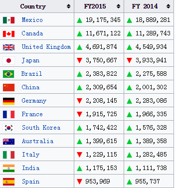 网红特朗普蹿红以来一手捧热了很多词汇,其中在经贸领域传唱度最高的词可能非“贸易战”一词莫属。在特朗普的眼里,“贸易战”这个词或许是美国的专属词汇,即发动者只能是美国,而其他国家则只有被动接受的份。不过,特朗普一厢情愿的毛病或许应该改一个改,因为全世界除了日本等少数软柿子以外,大多数国家还是有骨气的。 就在今天,继墨西哥、澳大利亚等国痛斥特朗普以来,欧盟也忍无可忍,果断出手! 欧盟议员在周四的一项投票中表示,因为美国不允许部分欧盟国家的公民免签证进入美国,违反了“签证互惠”原则,美国公民应该在今年夏天之前被拒绝免签证进入欧盟。 欧洲议会的表决将给欧盟委员会(欧盟行政部门)施加压力,迫使欧盟委员会执行为期一年的临时措施,暂停美国公民免签证入境欧盟。 欧盟对美国动手并非师出无名,这是因为在此之前,美国拒绝向波兰、克罗地亚、塞浦路斯、罗马尼亚和保加利亚等5国提供免签证待遇,而这5国恰好都是欧盟成员。眼看“小弟”被欺负,作为带头大哥,欧盟肯定要做出回应,不然原本就有分裂可能的欧盟会更加失去向心力! 不过,尽管欧盟做出了向美国开火的姿态,但实际上能不能把大炮的引信点燃可能还有待商榷。这是因为,对欧盟来说,美国客人尽管口碑和素质差,但却是欧盟国家重要的收入来源。 根据2014年的统计,美国人去欧洲旅游的总人数达到近1200万人次,这一数据位列美国人海外出游目的地的首位。 美国民众旅游目的地 1200万人次,保守计算按一个人1000美金消费计算都有120亿美元收入。尽管120亿美元和欧盟地区年10万亿美金级别的GDP相比是大巫见小巫,但考虑到目前很多欧盟国家的经济才刚刚有起色,所以即使麻雀再小也是难以割舍的肥肉。 反过来说,其实美国可能也怕和欧洲在相关事件上的斗争继续升温,因为美国的旅游产业一样指望欧洲人。以人数来说,刨去地位位置的因素(不算加拿大和墨西哥),欧盟包括英国赴美国旅游的人数占到全部到美国旅游人数的绝对多数: 赴美国旅游前几名的国家中,英国、德国、法国、意大利、西班牙2015年合计1100万以上人次; 所以无论美国还是欧盟考虑到旅游产业的发展,旅游产业解决的就业问题未来想必都会尽可能避免冲突的进一步升级。 然而,除了旅游产业以外,在其他领域,美国和欧盟相互之间或许就不会这么客气了。这主要因为,一来,无论美国还是欧盟旅游产业都不是核心支柱产业,所以旅游产业的作用不像其他领域比如制造业和服务业涉及核心利益;二来,欧盟和美国的旅游产业实际上并没有直接强烈的竞争关系,因为所谓风土人情、自然景观都是各具特色,天赋异禀,无所谓同质化竞争和可替代性; 下面就列举几个特朗普挑起的贸易战主战场: 从特朗普上任以来就一直在叫嚣要对外国的产品征收高额关税,以给美国企业一个公平的竞争环境。本周在国会的演讲中,特朗普又继续鼓吹这一说法,他说: “我们必须为美国企业和工人们创造一个公平竞争的领域。目前,当我们把产品运出美国,很多其他国家都让我们支付高昂的关税和其他税费——但是,当外国企业把他们的产品运到美国,我们几乎没对他们收钱。” 不过,特朗普吵吵了许久,但是一直没拿出什么实质性的方案来。目前仅有的一个方案是美国众议院议长Paul Ryan提出的边境调节税方案:该税要求将对美国的进口商品征收20%的税,但同时给予出口商品免税。 此前大家总觉得特朗普的关税似乎针对中国,但认为实际上特朗普的关税计划对欧盟的影响可能最大。原因很简单,我们中国出口到美国的商品以美国本土不生产或者生产起来不经济的中低端产品为主,比如衣服、玩具等等。 由于这些产品本身的价值不高,因而如果因为征收关税导致相关产品提高20%的价格,那么美国民众的体验可能很变得很差,这将导致民众对执政者强烈的反弹。这么一来,美国对来自中国的很多产品很可能最终不会征收高额的关税,或者采取一种灵活变通的方式来调节,满足国内的生活必需品消费需求。 而欧洲就不一样了,美欧双方在中高端产品的重合率高,竞争性强,因此美国多加20%的关税会直接导致欧洲来得商品竞争力直线下降,从而给美国同类产品和企业赢得更大的生存空间和竞争力。所以一旦,美国开打关税大战,欧洲势必跟进予以反击! 特朗普的汇率情节和关税情节异曲同工,而且道理也类似,都是希望从成本下手提高美国的竞争力。 不过汇率方面很特殊的一点是并不能直接通过自身的政策来改变,而是常常看别人脸色。比如说,美元和欧元的对比,除了美国自身的汇率政策以外,还需要欧盟“配合”才能达成目的。 目前的情况是,美国经济相对欧洲复苏的更快,通胀也上升的更高,为了抑制经济过热和通胀进一步走高,美联储不得不加快加息的脚步。而同期,欧洲方面的情况是慢美国大半拍,也就是说欧洲的经济状况仅仅能够满足货币政策从宽松调整到中性,想要跟随加息还为时尚早。 欧洲根据自身的情况出发,美国就不爽了。特朗普觉得在德国主导下欧盟故意和自己对着干,明知美元加息,竟然还不意思意思。 觉得汇率这事其实无解,各国都是根据自己的经济状况制定货币政策,谁也不可能为了别国的竞争力提高而牺牲自己;况且美国的金融霸权其实就反应在美元上,美元如果长期走软那么实际上等于自动放弃