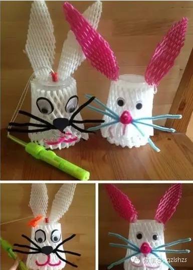 带着宝宝做手工 除了上面的妙用之外 泡沫网套还可以根据你的想象力 变成很多小手工作品哦