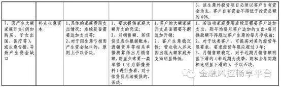(5)近期客户进行了哪些显著的经营活动或个人投资?此问题可以交叉检验客户对利润使用,间接判断客户对业务的态度。因为客户可能“隐藏的”贷款和未来计划。